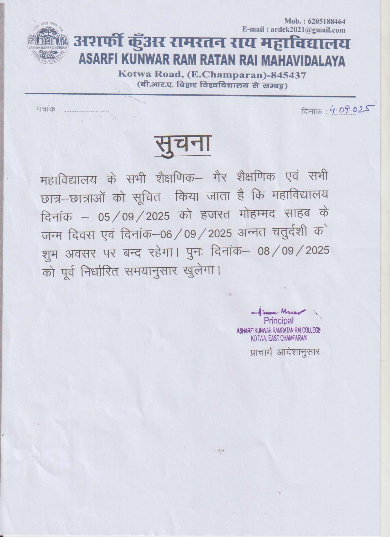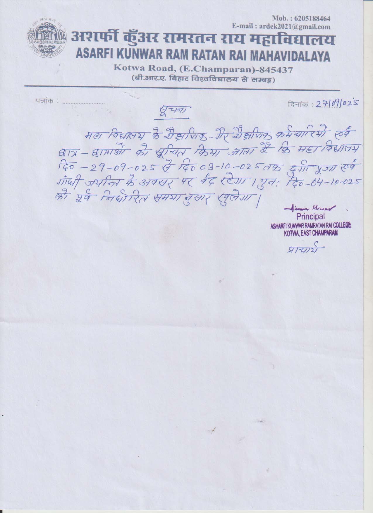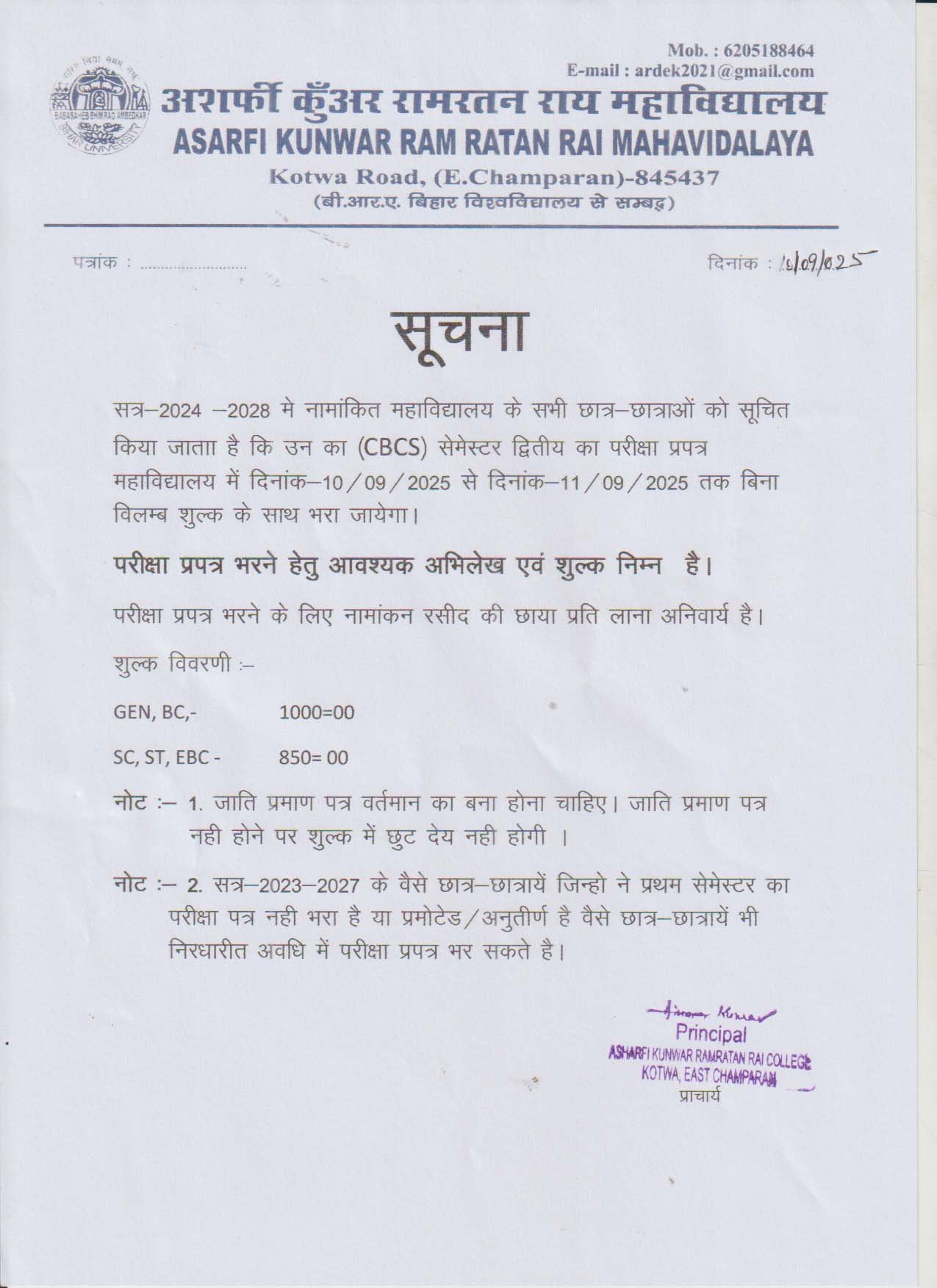 UG CBCS Session 2025-29 first Semester Class Start Will be 15/07/2025 |